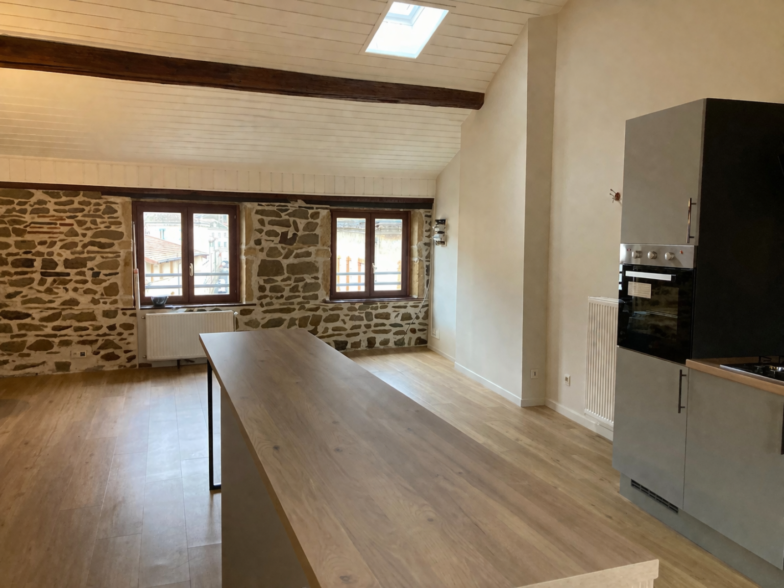 Tarare (69170)TARARE, 1 Place Janisson - Nous vous proposons à la location ce grand T3 en duplex de 72m², situé au 3ème étage d'un immeuble en centre-ville. Il comprend une cuisine équipée ouverte sur une grande pièce à vivre, deux chambres, une salle d'eau, un WC. Chauffage individuel gaz. Loyer 550€ dont 30€ de provisions sur charges (minuterie, entretien des communs, entretien de la chaudière), dépôt de garantie 520€, honoraires 449€.