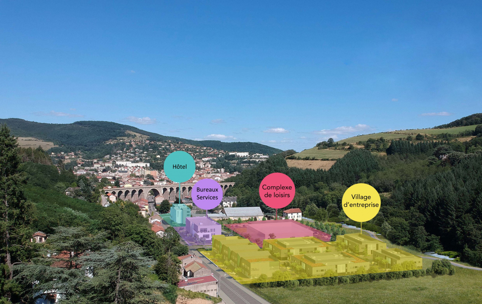 Tarare (69170)Situé à l'ouest de la ville, à proximité immédiate de l'échangeur A89 (sortie n°34 Tarare-Ouest), le Parc du Viaduc offre à la ville de Tarare un nouveau lieu de vie artisanal et tertiaire tourné vers l'avenir ! Ce village d’entreprise propose des locaux d'activités, des bureaux, des commerces, un hôtel, un restaurant et un pôle de loisirs, qui constitueront et un lieu de vie unique sur le secteur et feront du Parc du Viaduc le nouveau poumon économique du bassin tararien !