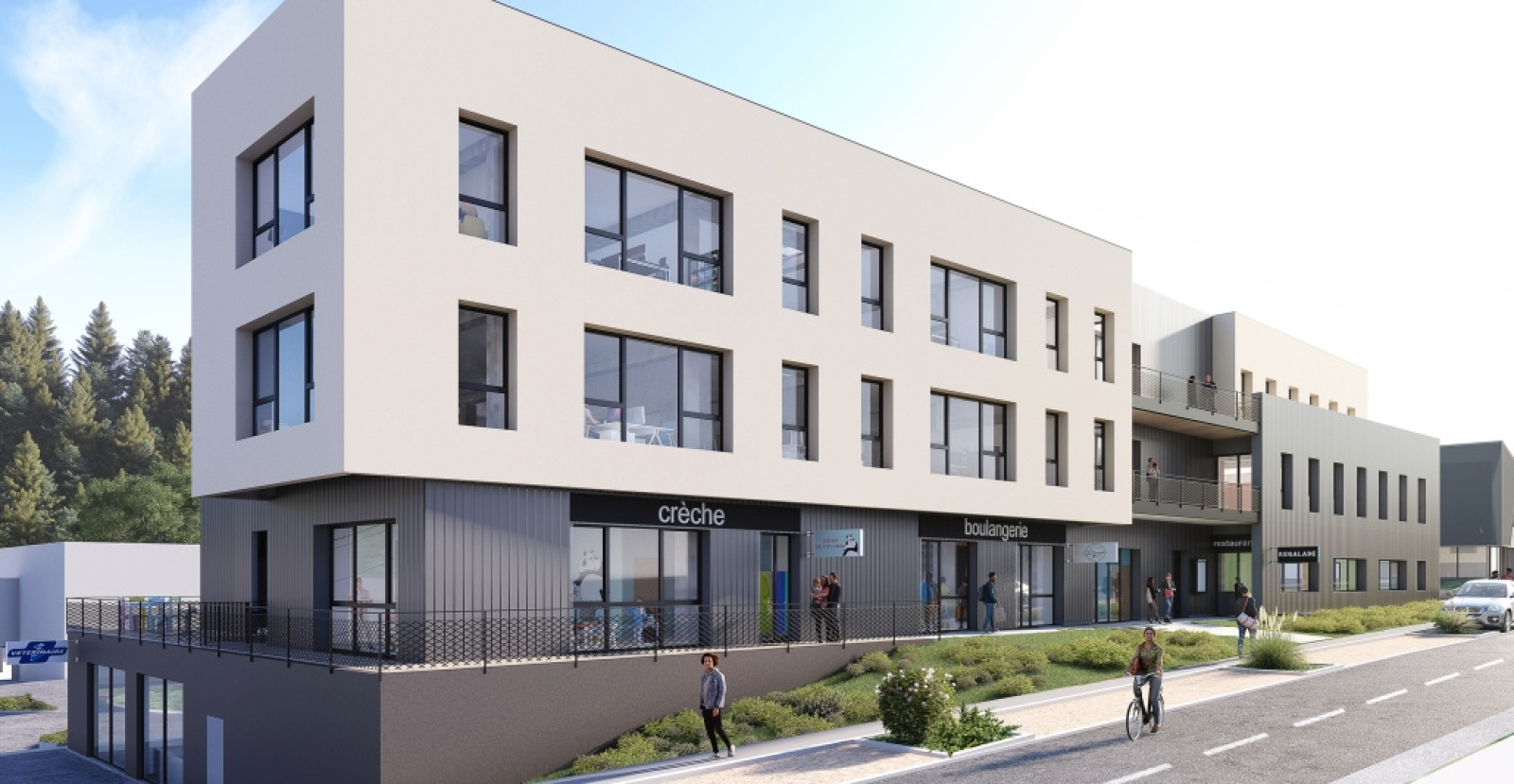- 3100m² dédiés aux activité tertiaires et commerciales (cellules à partir de 88m²)