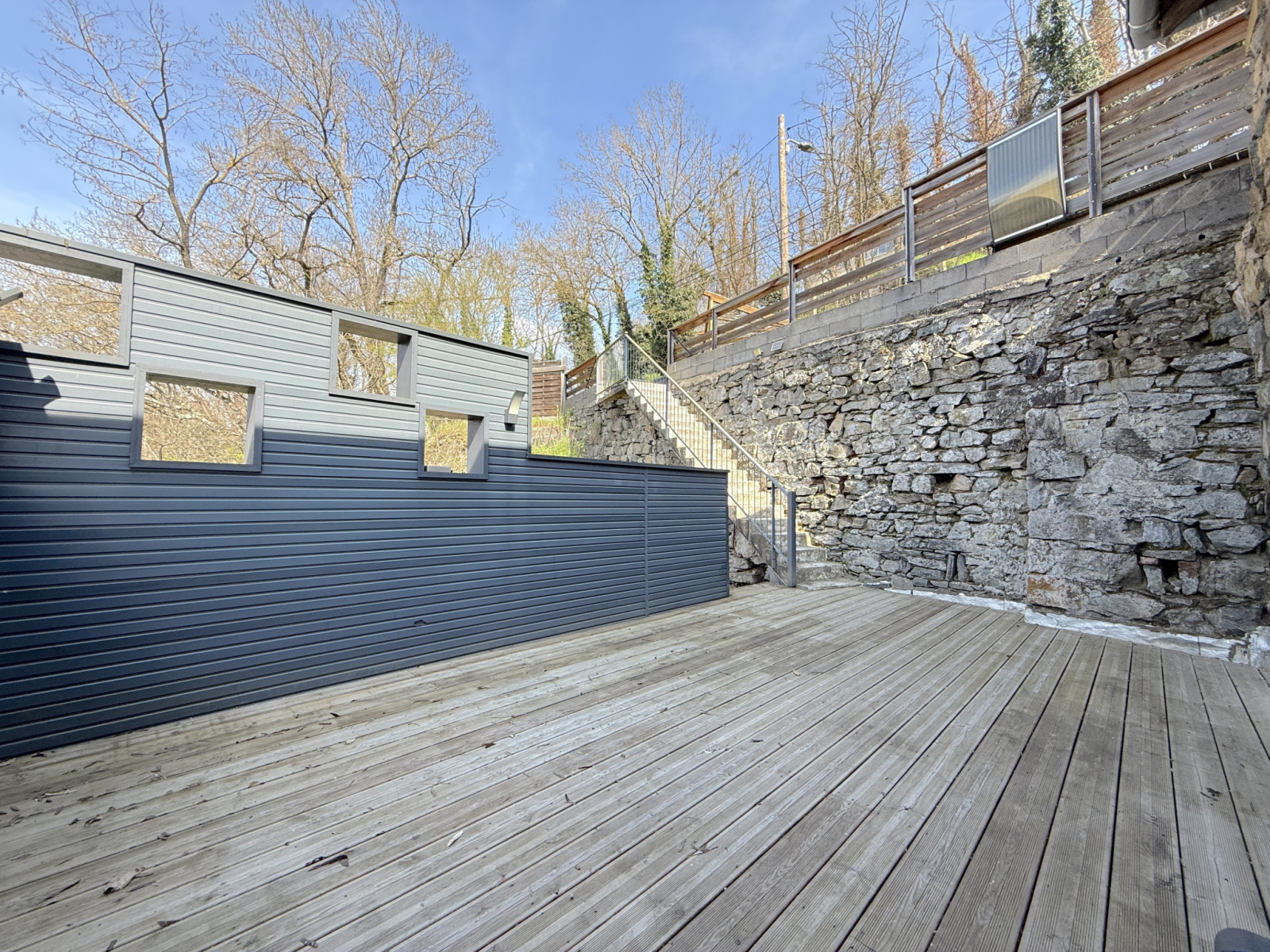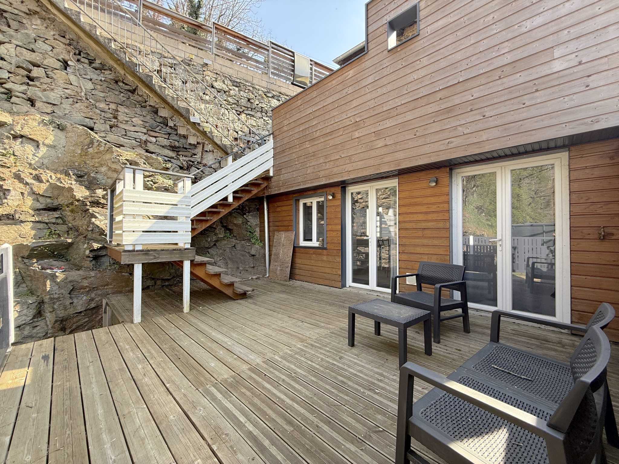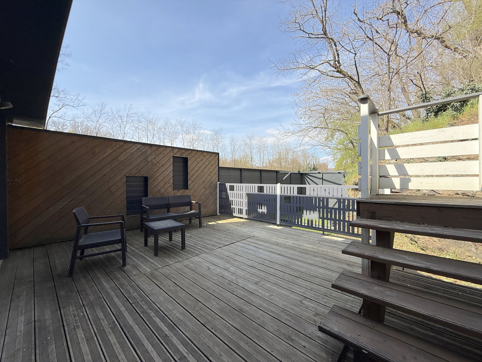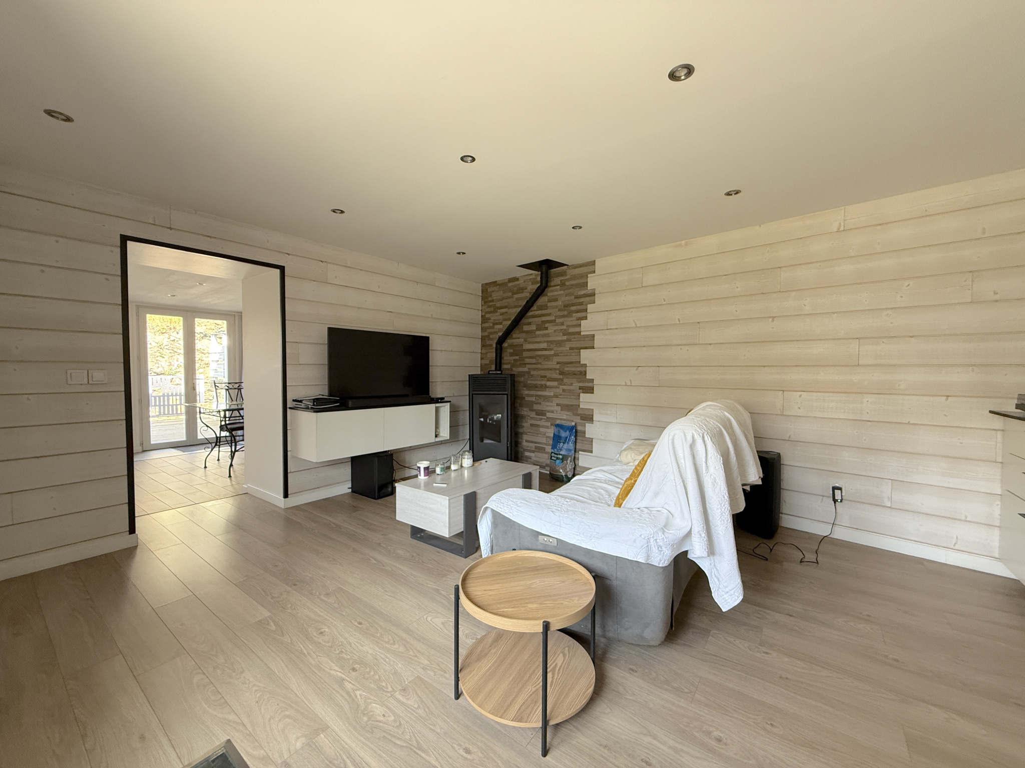 T2 (61 m²) : séjour généreux, chambre, terrasse plein ciel, poêle granulés.