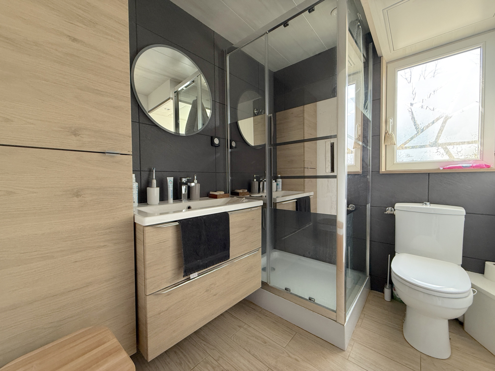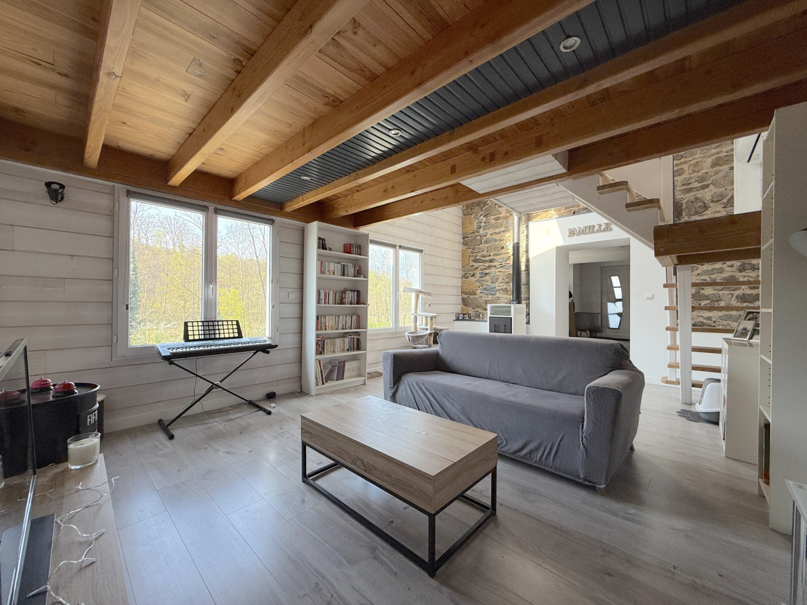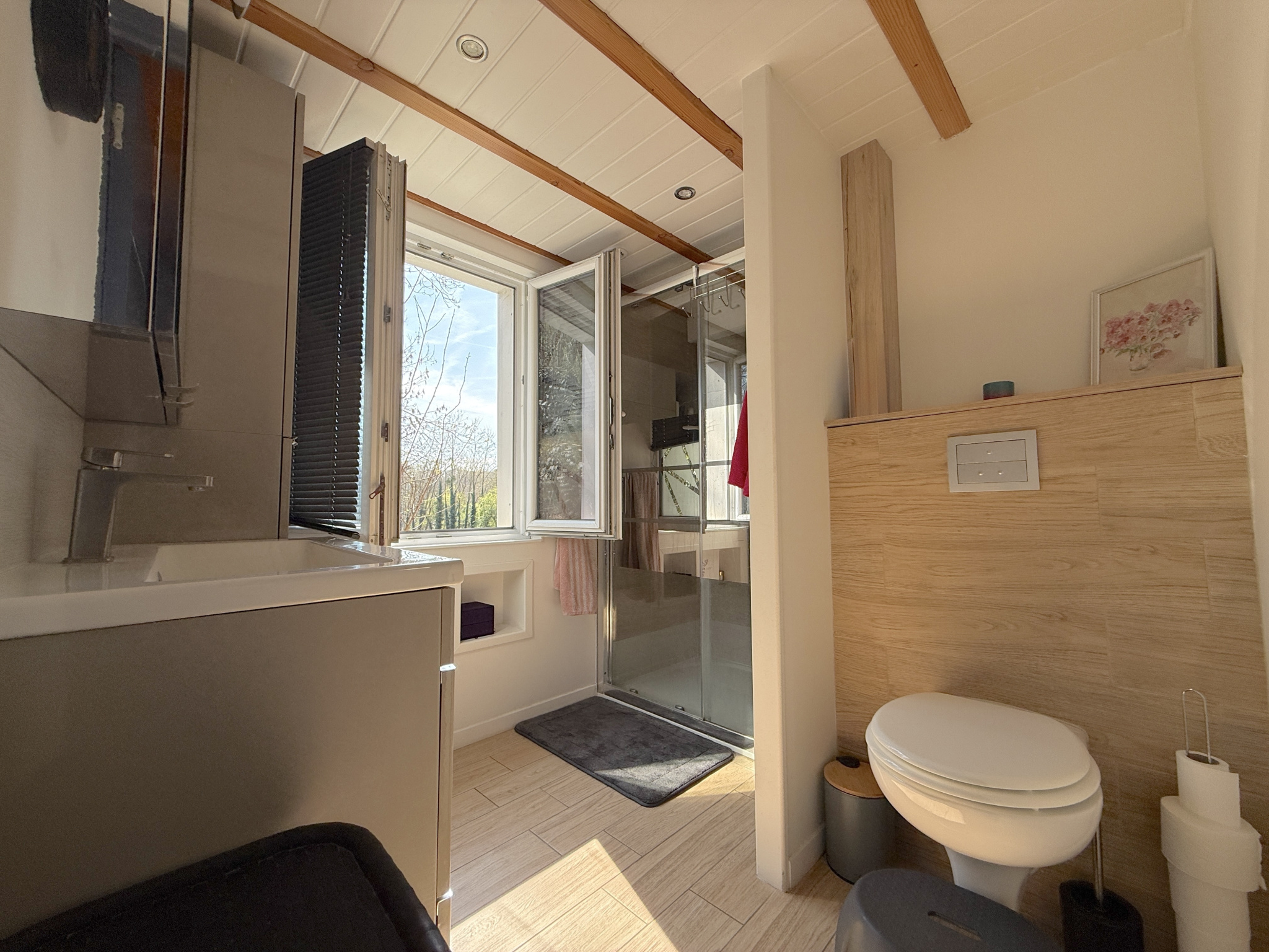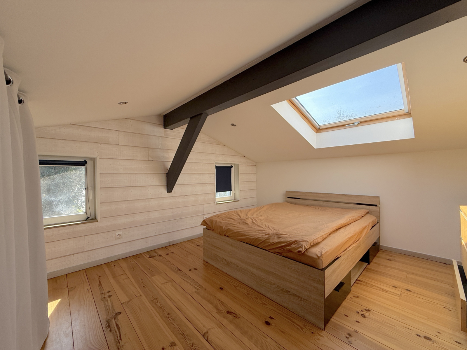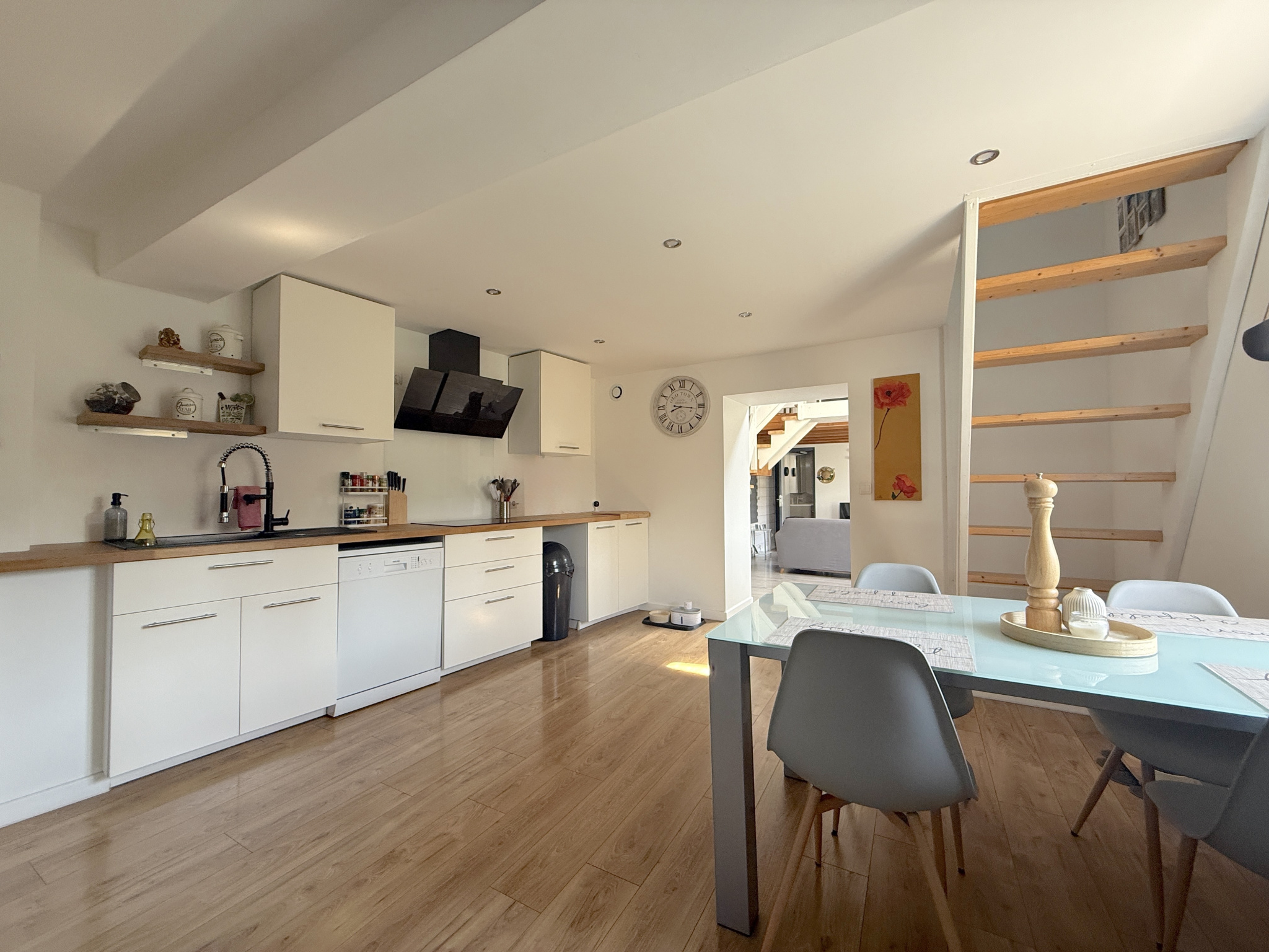 T2 (61 m²) : séjour généreux, chambre, terrasse plein ciel, poêle granulés.
